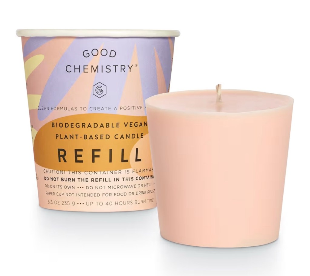 Refillable Candle—I love burning candles but I hate just throwing away the jars when they’re done. I tried making my own candles to refill them and it is messy and expensive. I found many (also expensive) brands of refillable candles online but settled on these more affordable candles from Amazon. These candles are made with a sustainably sourced, biodegradable vegan wax blend that does not contain parabens, propylene glycol, phthalates, or paraffin, and are made with recyclable materials. I haven’t tried a scent I don’t like, but the “Coconut and Chill” is my favorite. The filled jars are $16.99 and the refills are $10.99. They are easy to scape out and the refill pops right in. Makes me feel better about burning candles since I’m reusing the jar over and over.