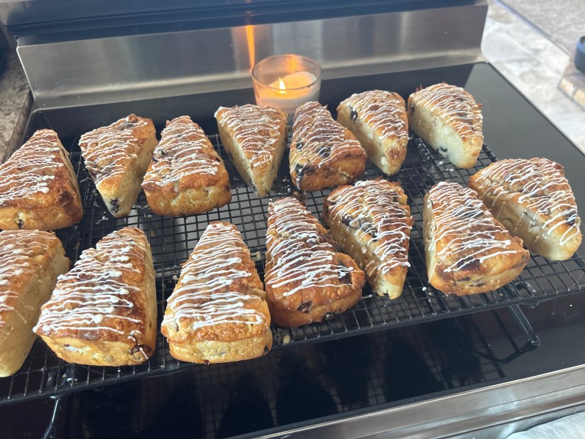 Once the scones are cool, drizzle them with the glaze.